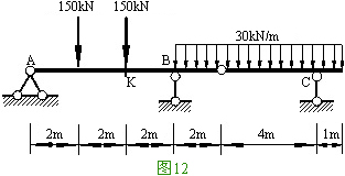 5、利用影响线求图12所示的梁在荷载作用下的K截面的弯矩MK。