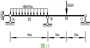 1、用力法计算图13所示连续梁,并绘弯矩图。各杆EI相同,为常数。