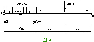 2、用矩阵位移法作图14所示连续梁的弯矩图。各杆EI相同,为常数。
