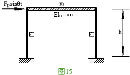 3、计算图15所示结构的振幅,并绘制最大动弯矩图,设q=0.5w。已知EI为常数。